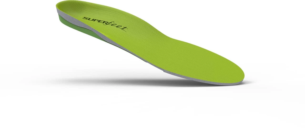 Cushy, supportive insoles designed to fit trail running, hiking and skiing footwear. A combination of full-length EVA foam and composite heel plates provides a secure stable platform, delivering better shock absorption to reduce foot, ankle, knee and back pain. Green insoles can also improve shoe fit too, so you end up with less muscle fatigue after a long day on your feet.